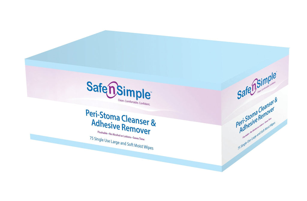 Use these soft wipes to breakdown and remove adhesives, dirt and oils from peri-stomal skin. Does not leave an oily residue. No-sting, alcohol-free and no-rinse formulation. Gentle, convenient and scent-free. Individually wrapped wipes. 75 per box.